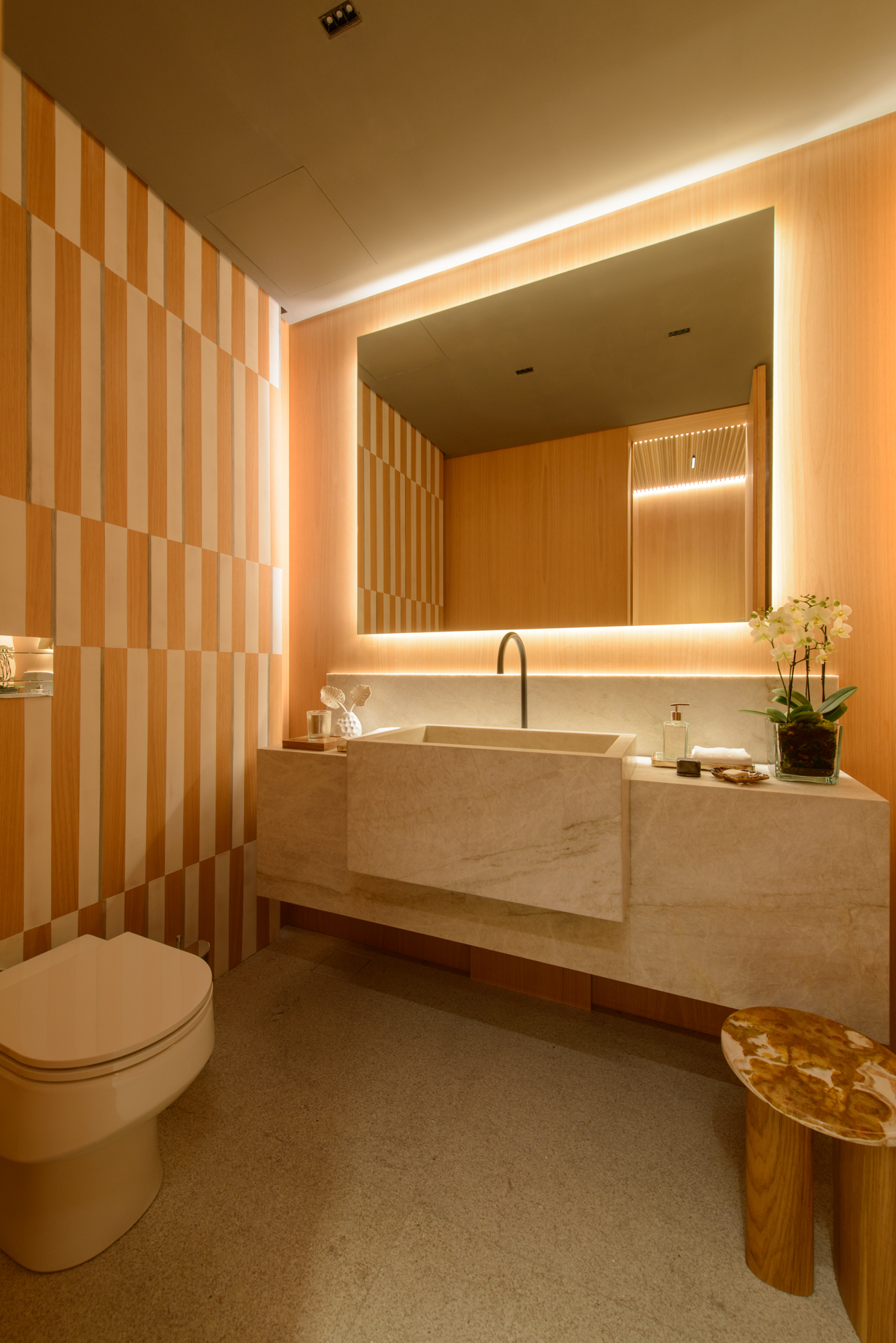 O Apartamento Morumbi traduz a integração entre arte, arquitetura e luz. Com espaços amplos, revestimentos naturais e uma paleta cromática quente, o projeto luminotécnico da WeLight enfatiza a elegância serena dos ambientes com soluções precisas, minimalistas e emocionais. A iluminação atua como fio condutor — sutil, mas essencial — costurando texturas, volumes e percursos com suavidade e propósito.