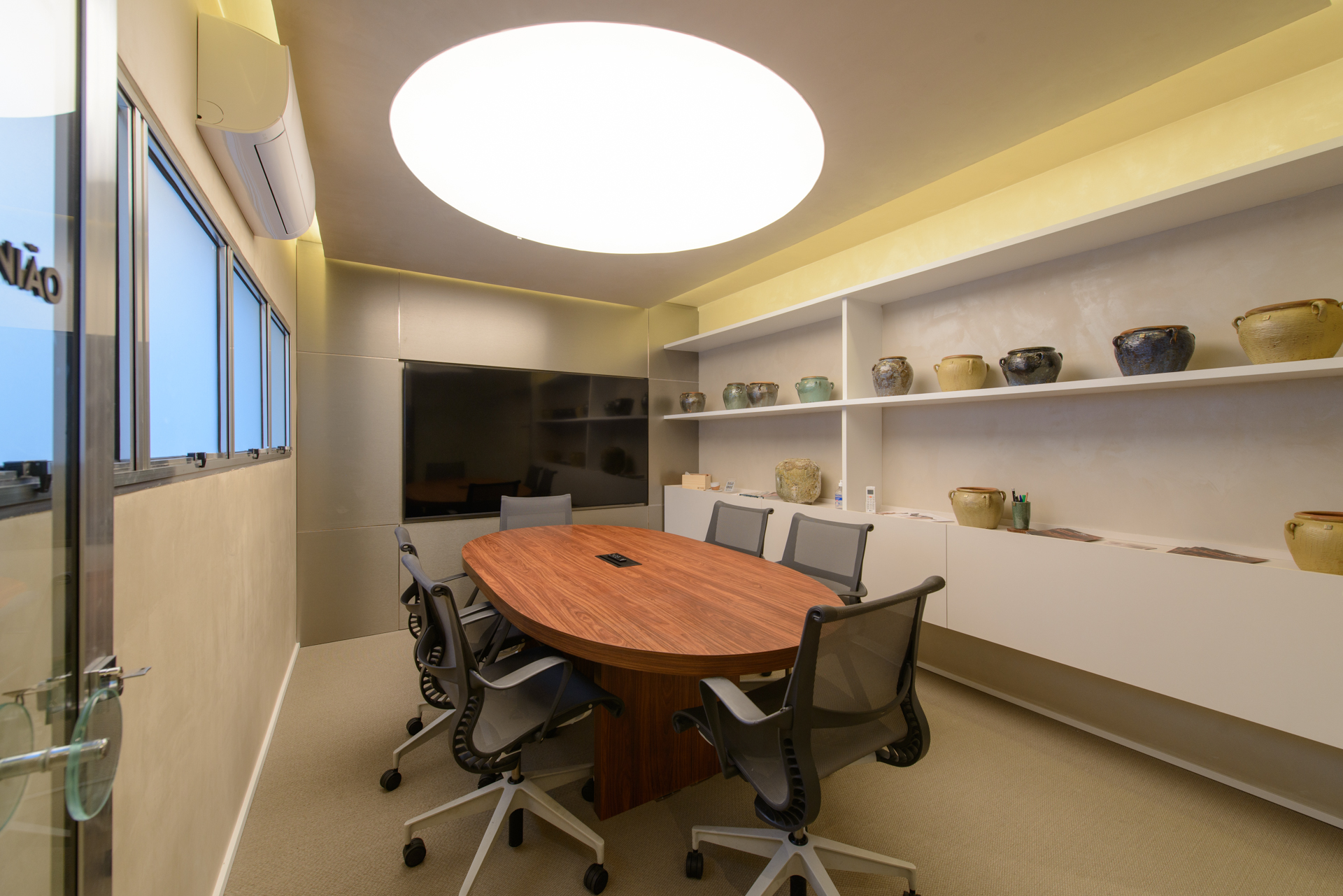 A luz é pensada como continuidade do fazer artesanal. Camadas de iluminação indireta, perfis lineares embutidos e fachos cuidadosamente direcionados integram-se à arquitetura com discrição e sensibilidade.